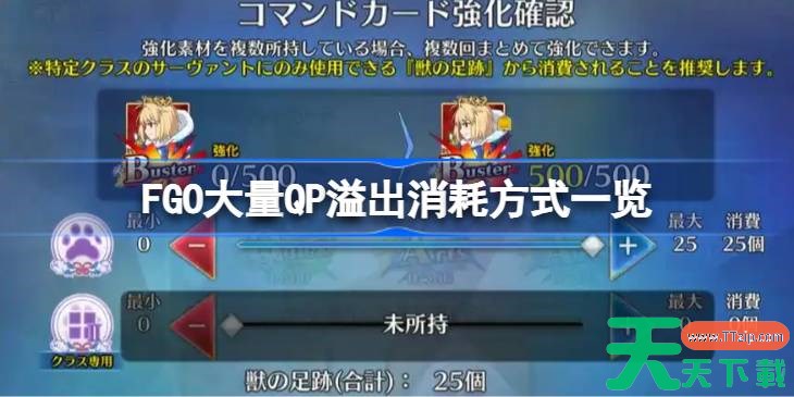 以上就是FGO大量QP溢出消耗方式一览的全部内容了,希望玩家可以顺利的知道怎么消耗了,更多精彩内容请关注天天下载(ttzip.com)。