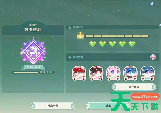 (5)【重点!!】因为锦标赛胜利八轮就会强制结束对战,保留队伍,昔米露是美局对战过后提升随机一名奇美拉攻击和专属奇美拉额外经验,所以要多进行对战。在最初队伍没成型的时候,多去输掉或者打平比赛,比如刷新的时候锁定奇美拉但不放进队伍里面,或者把一些后期发力前期容易死的奇美拉放在前面之类的,总之就是要多输。