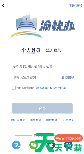 第一步:下载“渝快办”APP,下载后点击我的,进行注册登录。