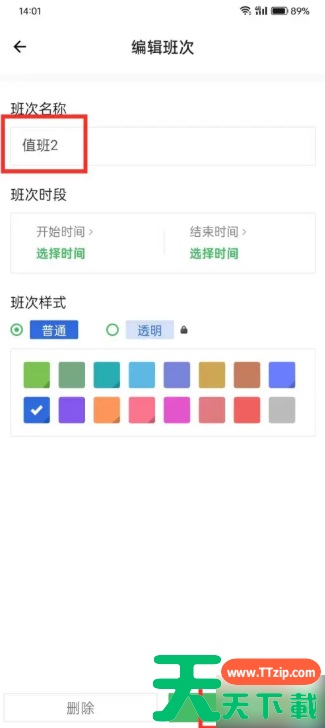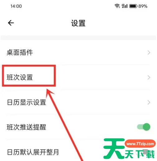 第一步:打开排班日历APP,点击【班次设置】。 第二步:进入班次设置页面,选择班次。 第三步:进入编辑班次页面,输入新名称,点击【保存】即可。 @天天资源网TTzip 除特别注明外,本站所有文章均为 天天下载 原创,转载请注明出处来自 https://www.ttzip.com/204083.html