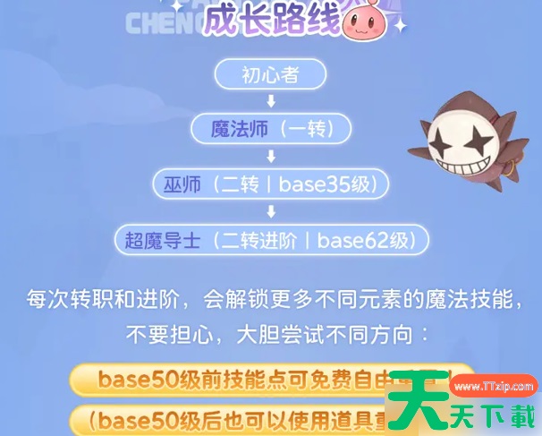 每次转职和进阶,会解锁更多不同元素的魔法技能,不要担心,大胆尝试不同方向:base50级前技能点可免费自由重置,base50级后也可以使用道具重置哦!
