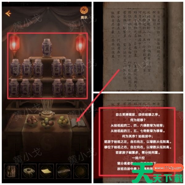 10、查看供桌上的书,获得灵牌摆放顺序