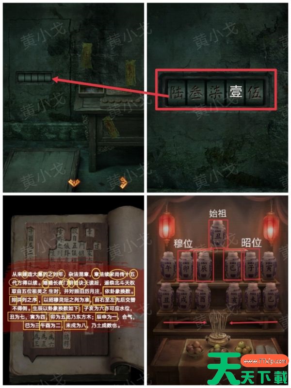解谜思路:①暗门钥诀取自五位祖灵之生时,依卦象换数(五位包括:始祖、始祖起的二三四五,即丑卯辰巳子)