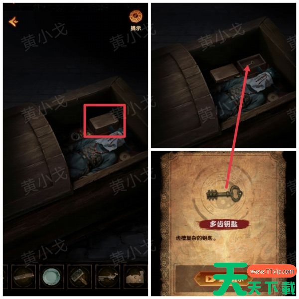 15、打开棺材里的盒子,获得【多齿钥匙】