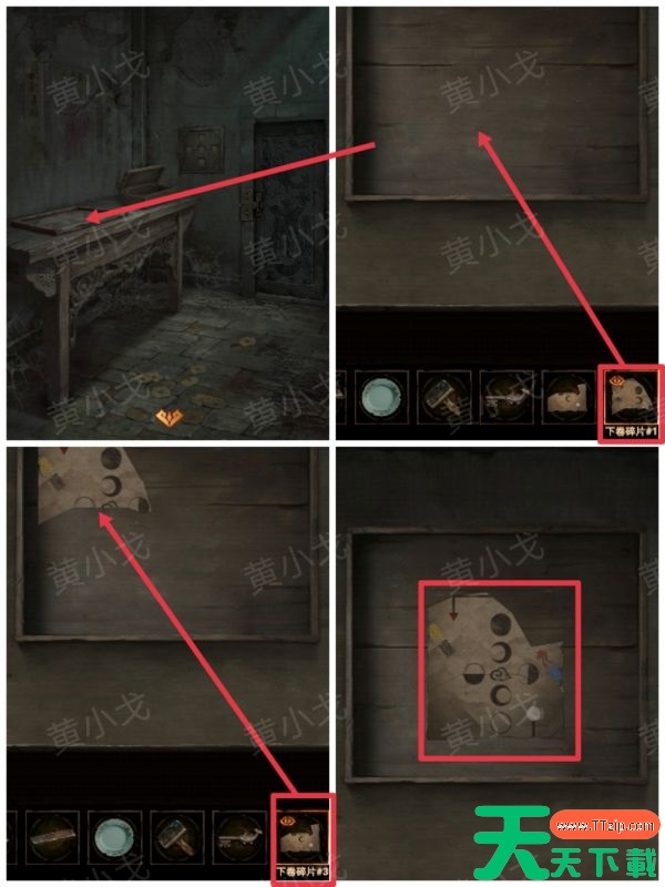 17、把【下卷碎片1】和【下卷碎片3】放到桌子上的木托盘中,拼合起来,获得线索