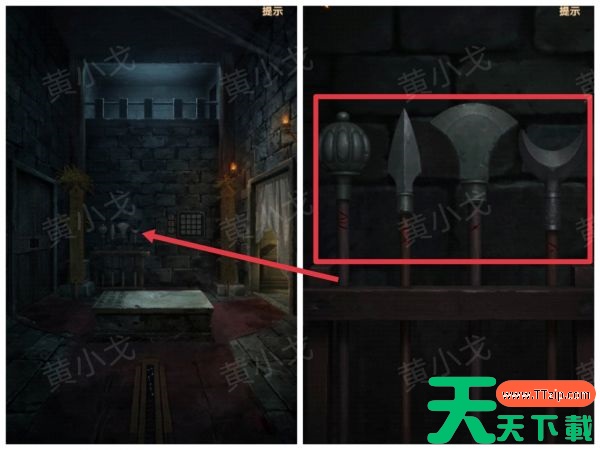 2、查看武器架,获得线索