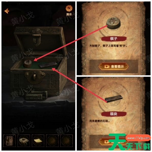 5、打开箱子,获得【棋子】和【砚块】