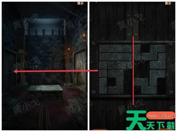6、点击左侧门上的机关,完成小游戏,打开门