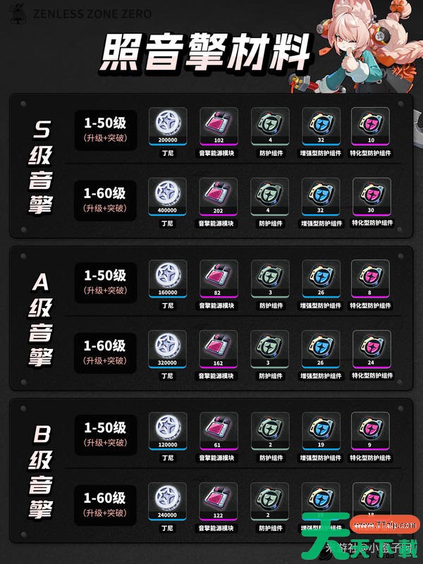 绝区零上线了2.5版本,在新版本将会上线新角色照,很多玩家都想知道照的升级突破材料,下面就让我们来看看绝区零照升级突破材料吧。 绝区零照升级突破材料 以上就是绝区零照升级突破材料的全部内容了,希望玩家可以顺利的知道需要哪些材料,更多精彩内容请关注天天下载(ttzip.com)。 @天天软件站Ttzip 除特别注明外,本站所有文章均为 天天下载 原创,转载请注明出处来自 https://www.ttzip.com/204118.html