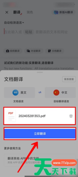 上传文档后,点击【立即翻译】,即可将文档翻译成所需的语言。