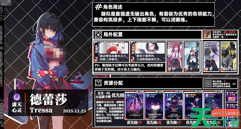 但是如果玩的是奶刀,能给对面挂很多层的中毒的话,3号变体是最好的选择,因为这等于是把每一层毒变成两层,伙伴方面推荐安泰雅和艾洛伊斯,这两张卡的被动效果其实差不多,但是艾洛伊斯更容易满破,所以就更推荐艾洛伊斯,如果没有的话,那大家就选扎塔拉,那扎塔拉是给16%的攻击力的,而痛苦是吃攻击力加成的,存档装备方面特别推荐30级解锁的心灵术士战斗强化符,每当大家消灭卡牌时,获得固定护盾30%,只要特蕾莎有了这个甲,那么全队的生存就不是问题,特别是大家玩奶刀的时候,此外红箭不要迷信这个装备,这个装备对于德雷莎的影响其实非常的小,因为大家能给对面上无数层痛苦,多这一层少这一层无所谓,但是如果没有其他的选择,那么红箭也还可以。
