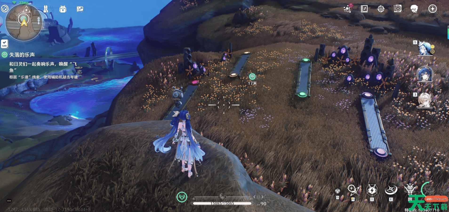 找到营地里的日灵,对话,捕捉音符(这里我用的琳奈,同样只需要一直平A就行)