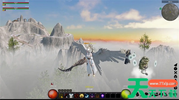 另一个重要部分是飞行。如果你去地图上的漂浮岛屿区域,可以与龙Boss战斗。这条龙既能掉落飞行坐骑,也能释放飞行技能。你可以按键盘上的F9开始飞行(或者再按一次禁用飞行模式)。