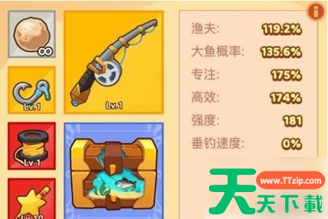 1、渔具:鱼竿、鱼漂、鱼线、鱼钩,每个部分都有单独的功能特点同时也要单独进行升级。