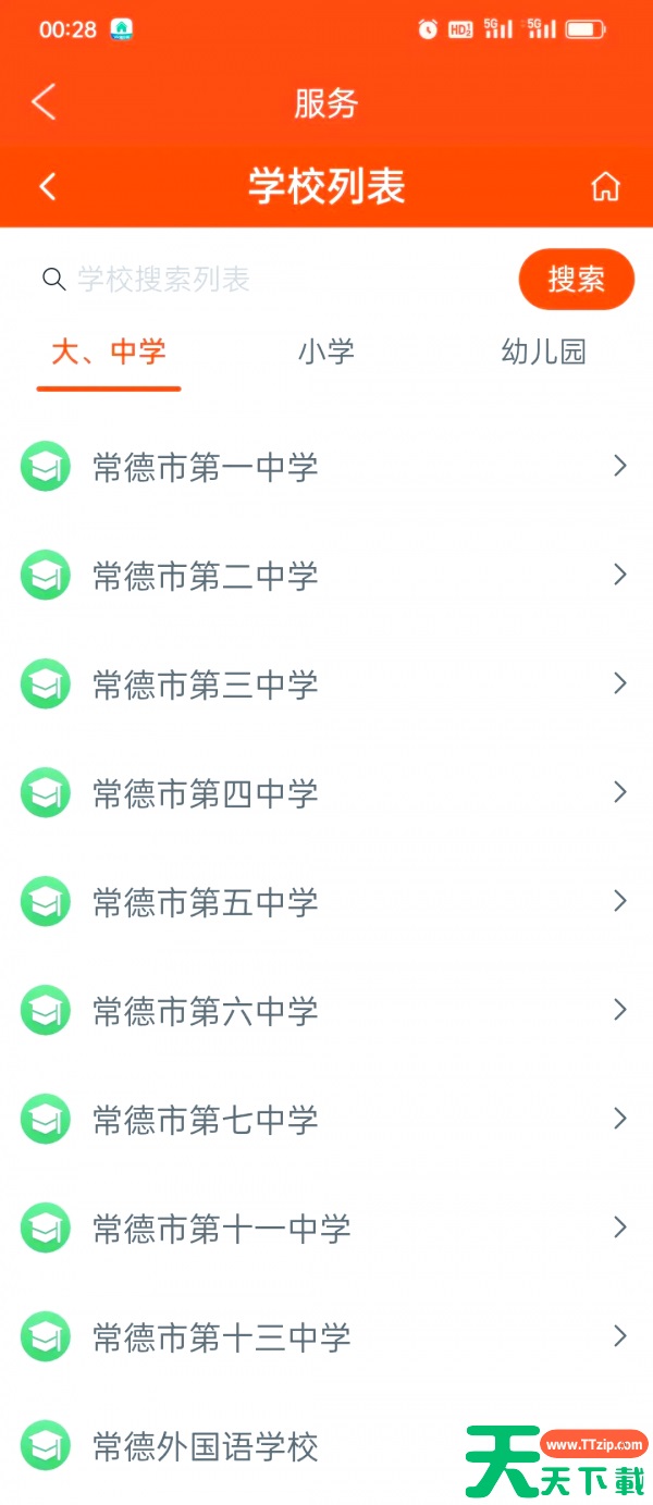 在“我的常德”APP中,首先需要选定学校所在的具体区域,随后点击“教育缴费”选项来查找并定位到相应学校。