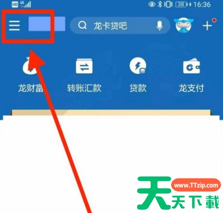 在中国建设银行应用首页,打开左上角【三】更多选项,如下图所示。
