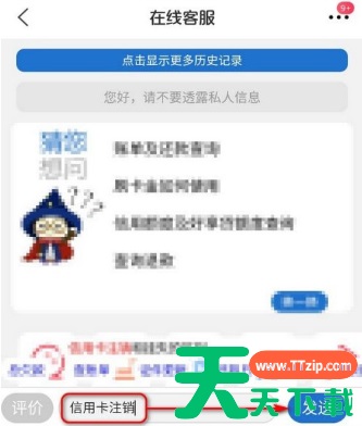 进入在线客服主界面,在信息框内输入:信用卡注销,然后点击发送。