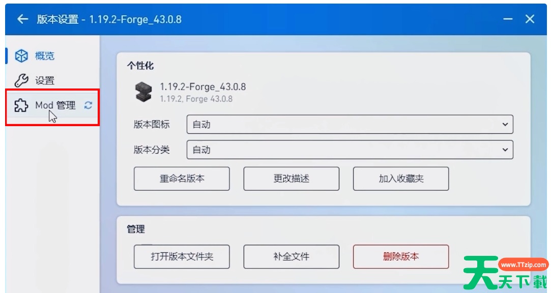 2、在左侧选择"Mod管理"