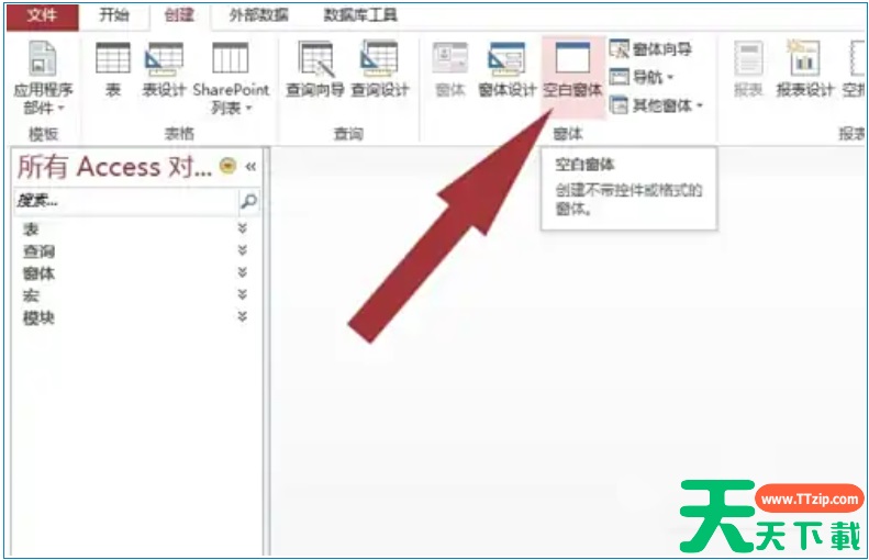2、在页面上方菜单栏中,鼠标左键单击“空窗体”按钮。