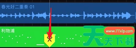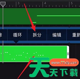 接着点击要裁剪的乐曲片段两次,再点击【拆分】;