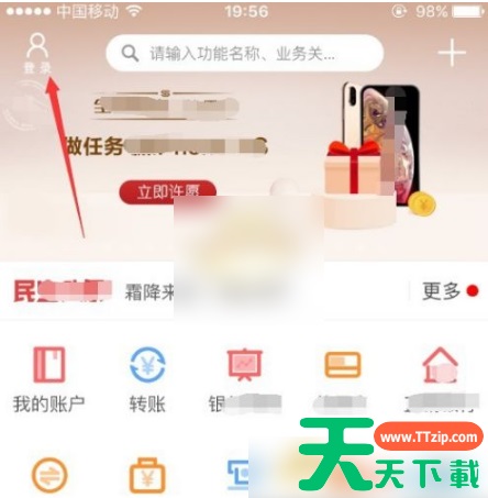 1、打开民生手机银行app,然后点击左上角的“登录”,进入登录页面,进行登录,如图所示。