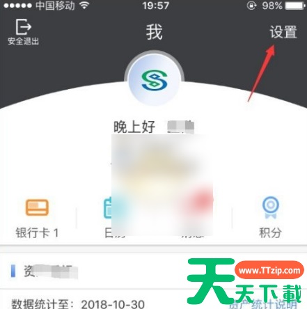 3、登录成功后,点击首页右下角的“我”,进入民生银行手机银行的个人中心,点击右上角的“设置”,进入手机银行的系统设置,如图所示。