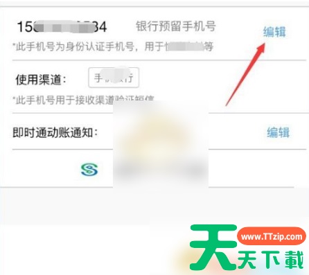 5、进入我的手机号之后,可以看到你在银行预留的手机号,可作为身份认证,点击后面的“编辑”按钮进行编辑,如图所示。