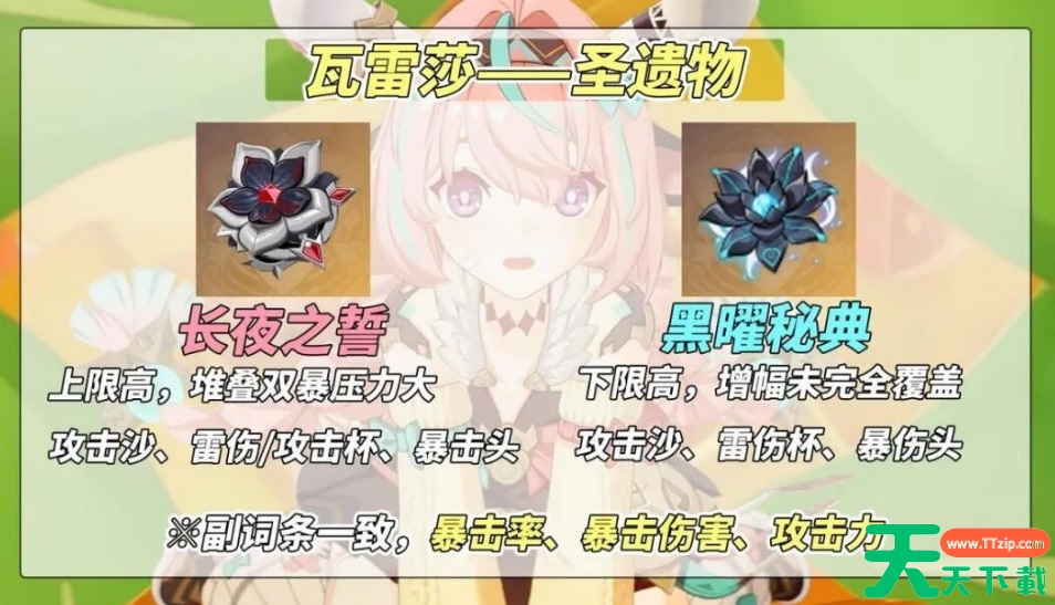 【圣遗物】目前纳塔两套契合瓦雷莎的圣遗物都很强,远超旧圣遗物,建议用新套装: