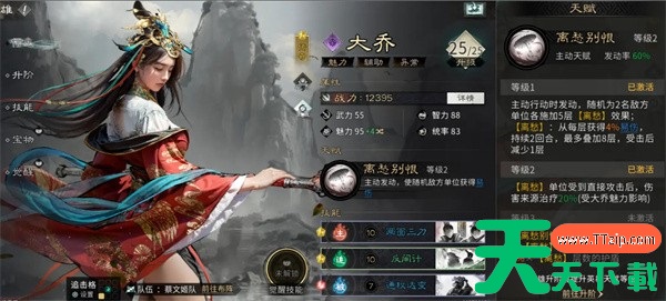 在三国天下归心中,有着丰富的角色能够抽取和培养,大乔作为魅力辅助异常型角色收到很多玩家的青睐,但有些玩家不知道大乔的具体培养方法。今天天天下载Ttzip将为玩家带来三国天下归心大乔养成一览,供有需要的玩家进行参考。