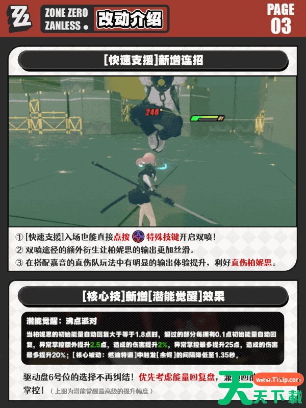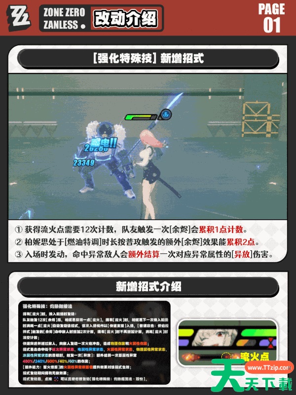 在绝区零2.5版本中,柏妮思作为火属性异常角色将进行潜能改动增强,适合在更多的场景和挑战中来使用。但很多玩家都不知道柏妮思加强在何种地方。今天天天下载Ttzip将为大家带来绝区零柏妮思加强介绍一览,供有需要的玩家进行参考。