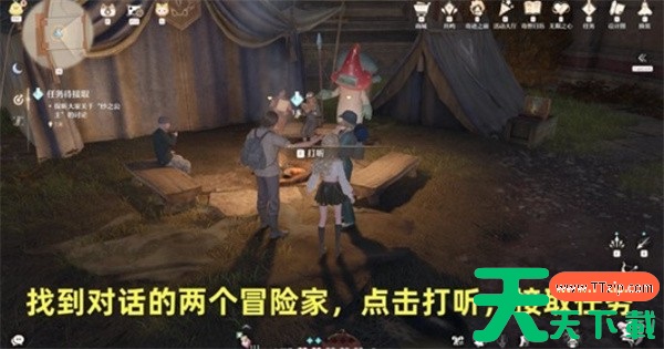 2、找到两名冒险家对话,选择“打听”,正式接取任务