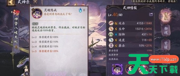 在阴阳师中,SP神坠八岐大蛇作为输出位式神,在各种玩法和竞技场上都有着一定的出场空间,适用范围很广,很多玩家都想培养和使用,但苦于技能搭配问题。所以天天下载Ttzip今天将位大家带来阴阳师SP神坠八岐大蛇技能介绍指南,供有需要的玩家进行参考。