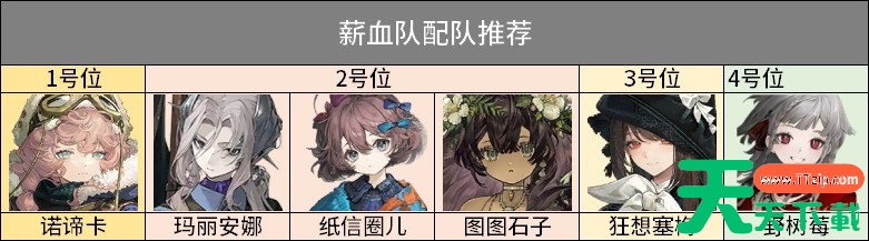 不过玛丽安娜却是薪血队中因环境问题而最容易被替换(比如但不限于:敌方能够上控制或强力负面效果时,一般换成图图石子,若是生存压力极大的鬃毛邮报,也可能换成图图石子,若是场地只有仪式有伤害,一般换成狂想梅兰妮/图图石子)