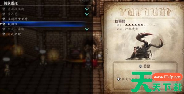捕获委托的蚁狮怪不可击杀,也不能抓回家,否则无法重复偷取坚果。