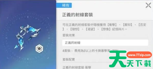 第二种高费技能爆发流,比较适配的角色有百丽儿、小春等部分核心技能为2点的角色,核心的搭配方案为正义的射线四件套+执行者的道具两件套,其中正义的射线可对两费卡的伤害进行大幅提升,可谓是这一类角色的必选,而搭配执行者的道具,则可对暴击伤害完成更高放大。