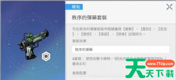 第三种搭配思路是攻击强化流,选择制取的弹药四件套和黑翼两件套,这一套装与雨果的适配度很高,也可以尝试在一些高频攻击的基础卡牌角色身上使用,其中秩序的弹药可对基础卡还进行专门强化,而黑翼则可对攻击力进行提升,每一次的普攻也能够达到非常不错的效果,对于早期将获得雨果的卡牌的玩家来说,可尝试。