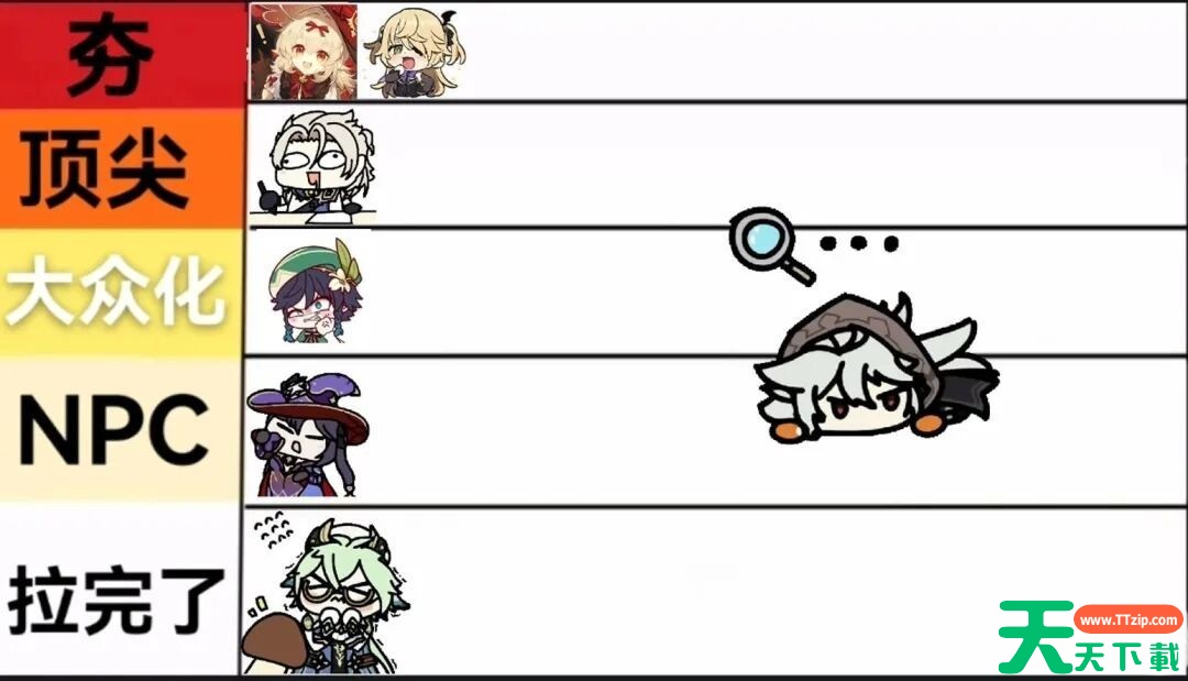 原神6.2新版本为多位开服老角色进行了加强,很多玩家很关心加强后角色的强度如何能否再就业,部分角色换成魔女户口后能稳定就业,天天下载Ttzip为玩家们详细介绍下每位角色加强后的强度排行,一起来看看详细的榜单吧。