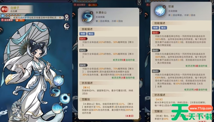 能够优先给2名残血队友施加援护分摊受到的伤害,加强对后排的保护并且有全体冰冻控制,配合白娘子可以形成双控制组合补充队伍的控制。还可以给c位加水盾叠寒冷同时加强对c位的保护和阵容是绝配。