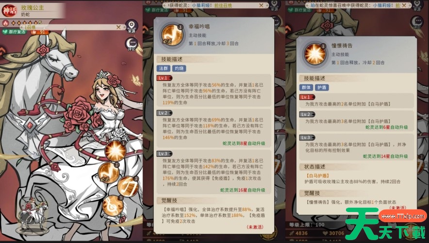 进一步保护队友,能够给队友提升伤害和免伤,净化队友的负面和提供复活和治疗配合骑士明妮和爱丽丝更全方面保护队友。