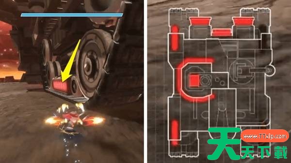 在清除掉巨神的所有主要弱点后,它正面的核心将成为另一个弱点。寻找一个靠近巨神的橙色区域飞起来,轻松击中这最后一个弱点!