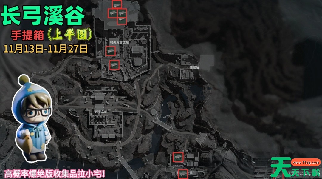 长弓溪谷:长弓溪谷上半图手提箱点位: