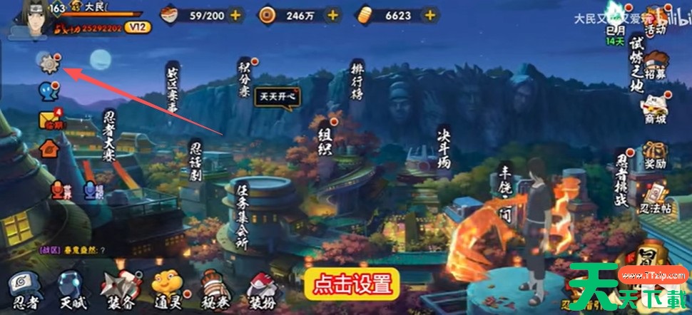 1、进入火影忍者手游点击设置