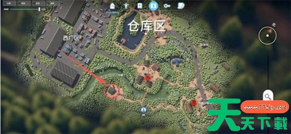 1、前往仓库区地图,定位在沟壑南方的独栋小屋。