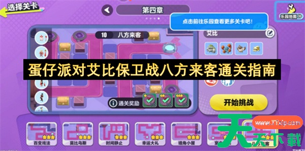 蛋仔派对有着丰富的趣味玩法模式,其中艾比保卫战作为塔防玩法,玩家需要努力建设防线来消灭敌人,许多玩家卡在了第四章第十关八方来客,天天下载Ttzip今天就为大家带来该关卡的通关攻略,快来一起看看吧!