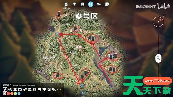 1.到零号区依照下面地图的路线跑一圈大约3分钟,只搜衣服跟柜子,敌人打不打无所谓,反正追不上,不想打调低难度跑过去就好,到左上记得用传送泡泡传送下来很省时间。