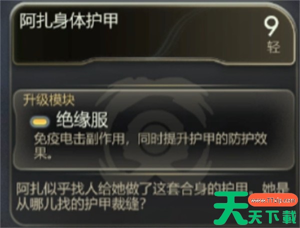 建议:主用“影融织物”构筑刺客流,若关卡中敌人普遍带能量武器,再切换为“绝缘服”。