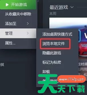 - 在Steam中右键点击逃离鸭科夫游戏,点击“管理”—“浏览本地文件”。