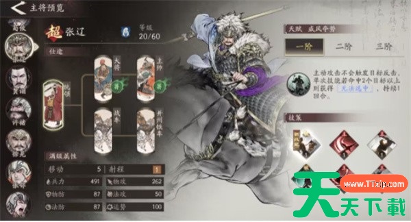 张辽拥有极强的机动性和连续行动能力,当命中三个目标后可立即再次出手。其多回合连动特性让他能持续输出,同时凭借高闪避有效规避伤害,是阵容中的灵活爆发点。