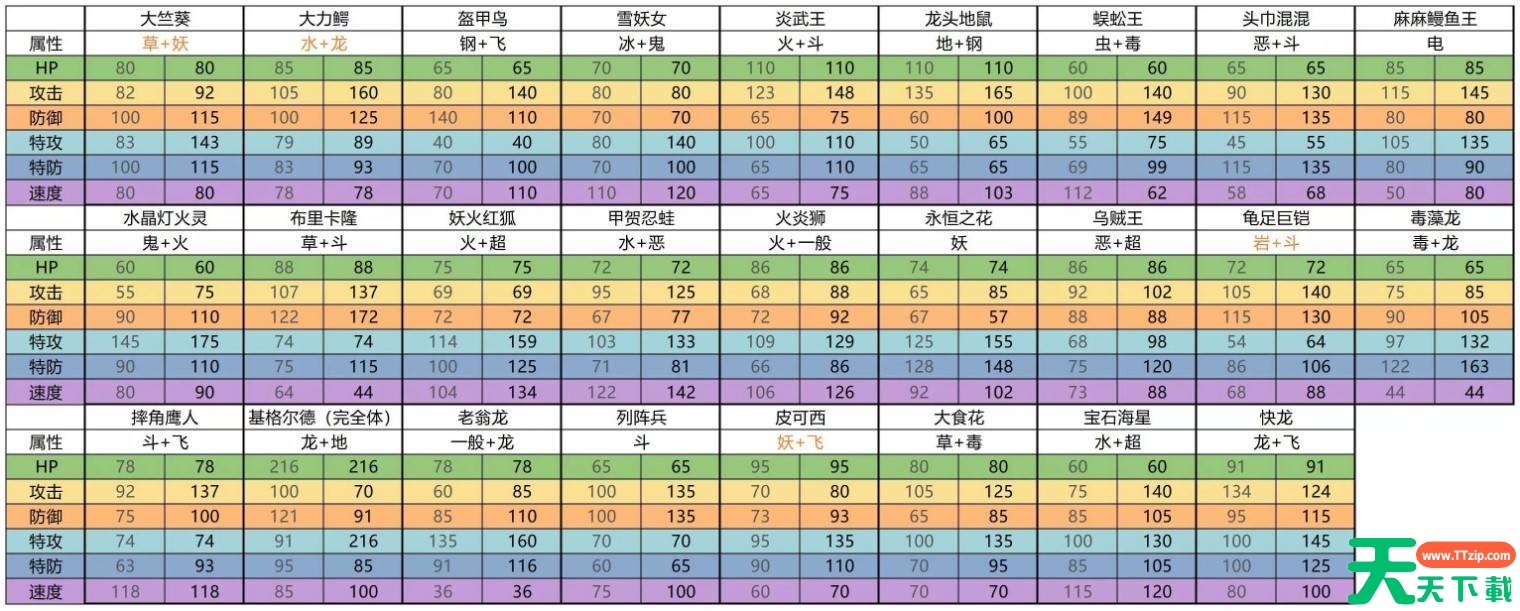 宝可梦传说za新增mega种族值一图流