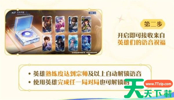 3、使用道具开启后,即可随机接收来自不同英雄的十周年语音祝福。